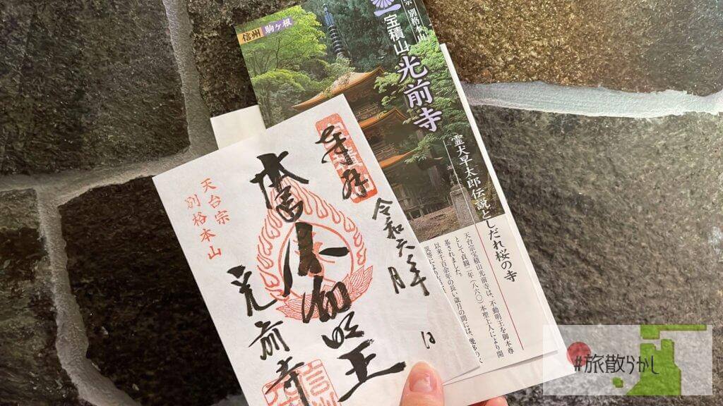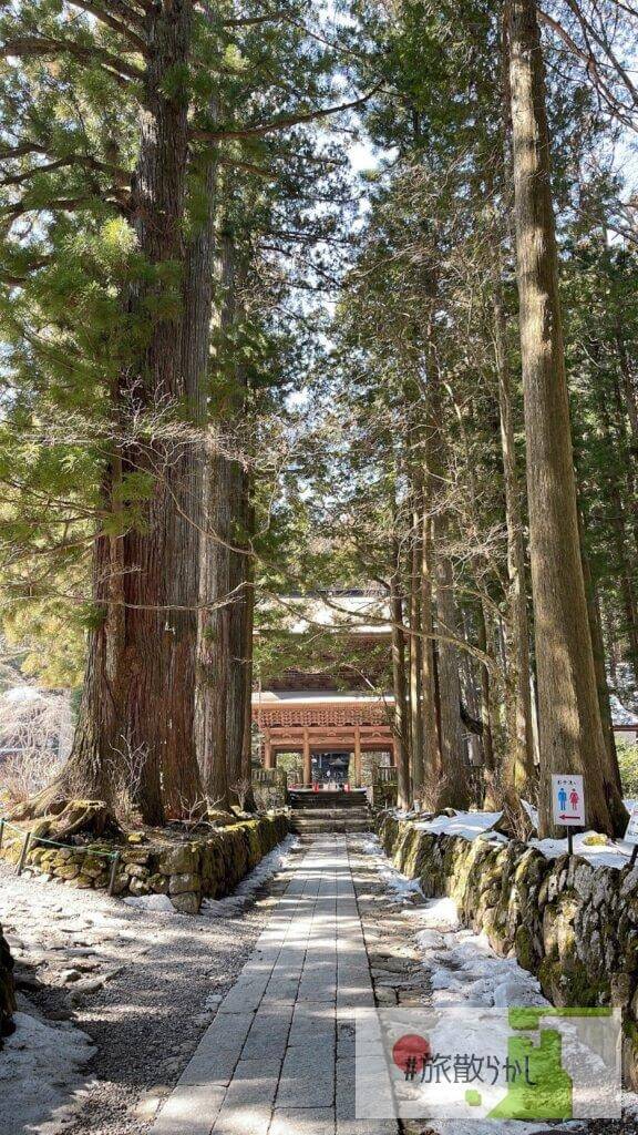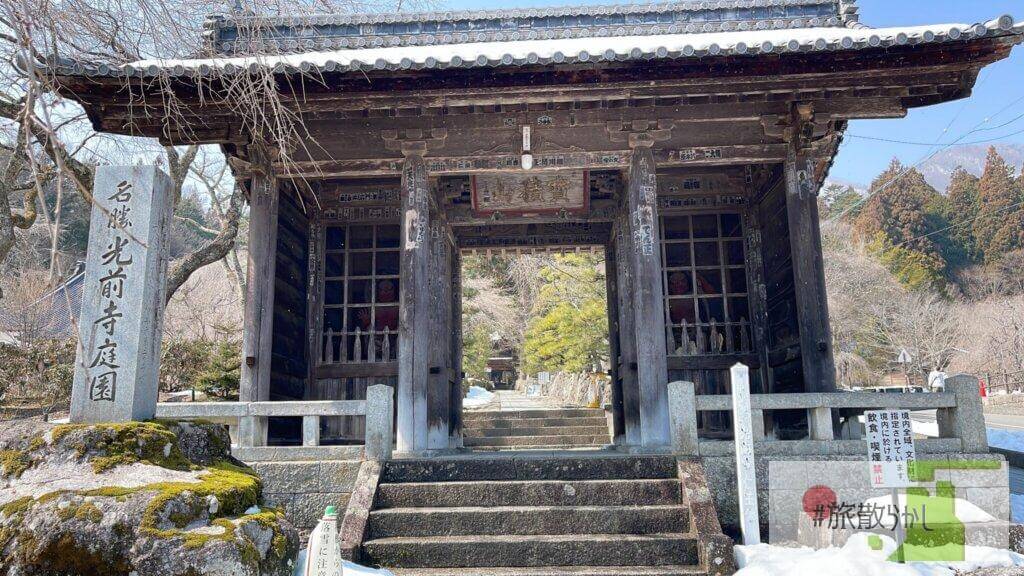 光前寺が創建されたのは、平安時代(860年)といわれています。不動明王がご本尊ですが、ご開帳は7年に1度のみの秘仏とされています。参道には杉並木が整然と植えられており、大半が樹齢100年を超えるものばかりだとか。