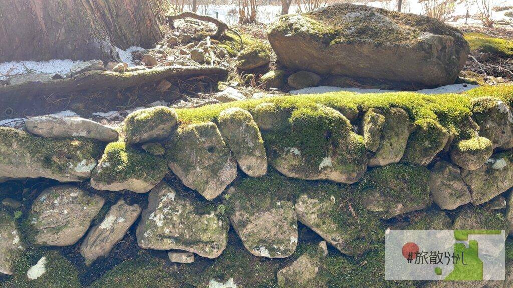 光前寺の参道の両側には石が積み上げられており、石の隙間や木の幹に、暗い場所でエメラレルド色に発光しているように見える光苔(ヒカリゴケ)を鑑賞することができます。