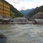 欅平駅から徒歩20分程度の場所にある「名剣温泉」では、峡谷の景色を眺めながら入る露天風呂が人気です。地鉄で宇奈月温泉駅へきて、トロッコで1時間半の山奥を突き進み、さらに20分山道を歩かないと辿り着けない名剣温泉はまさに秘境です。