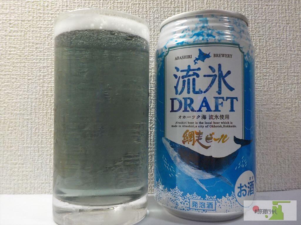 網走ビール「流氷DRAFT」青い色はオホーツク海をイメージした天然クチナシ着色