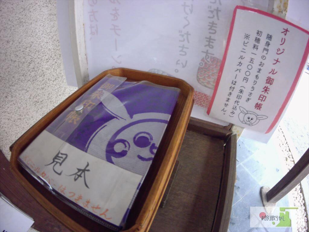 中央に阿智神社と書かれた御朱印を頂きました。頒布場所は社務所奥の朱印所です。不在の場合、ベルを鳴らしましょう。案内もあるので、分かりやすいです。阿智神社オリジナル御朱印帳の頒布もあり、藤を意識しているのか鮮やかな紫色です。表紙には可愛いうさぎのキャラクターが描かれていました。