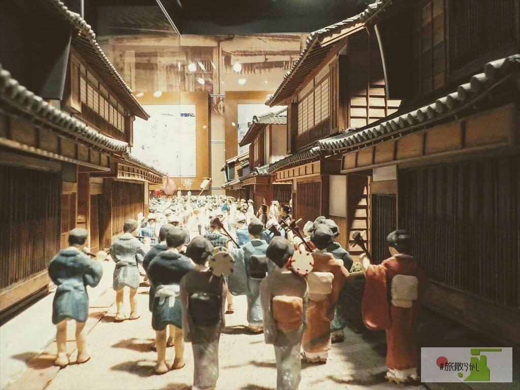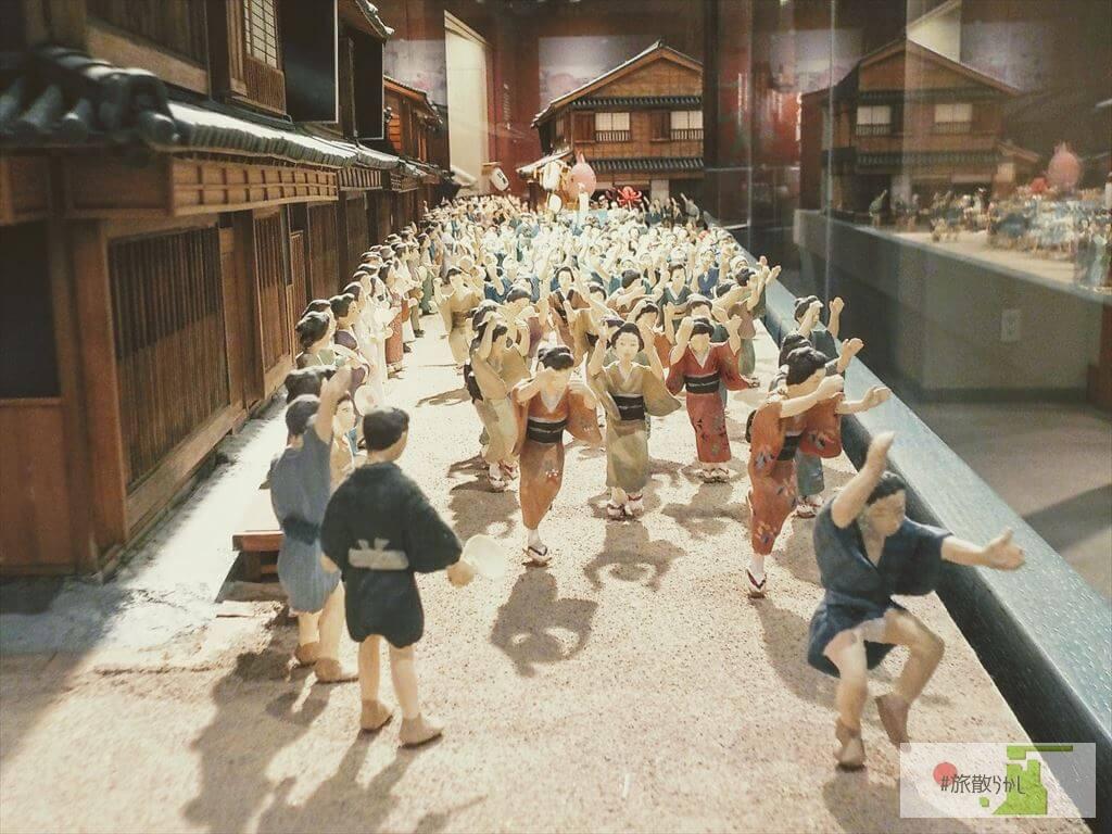 公演が終わったので、ミュージアムの階に移動した。阿波踊りの歴史や文化を表す品々の展示や、見て楽しいミニチュアがたくさん置かれていた。