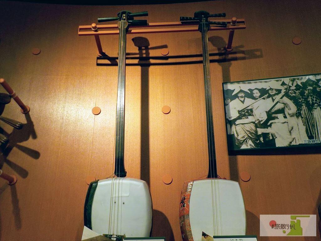 また、阿波踊りの衣装や鳴り物楽器の展示も面白かった。公演を聞いてきた後だったため、これがさっきのあの楽器か、とマジマジと見ていた。
