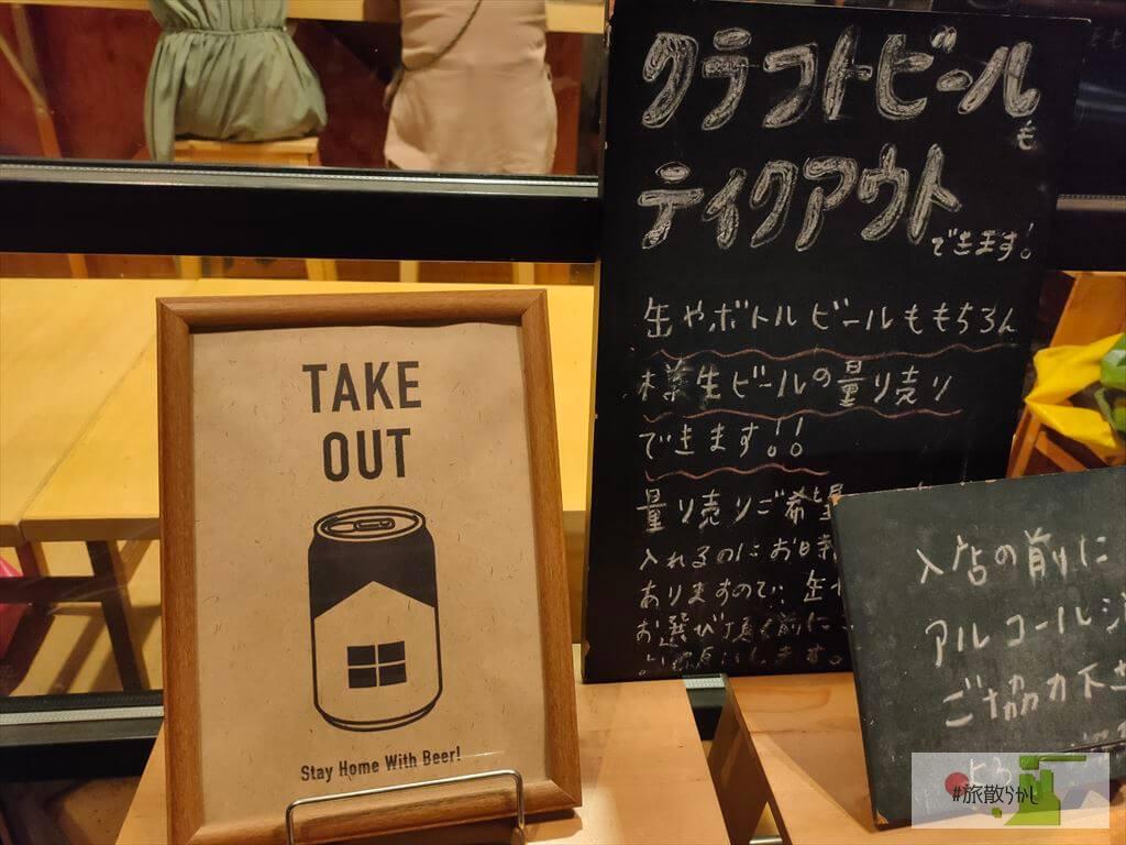 クラフトビールバーなのですが、生ビールをペットボトルに詰めてテイクアウトができます。店内では軽食もいただけます。