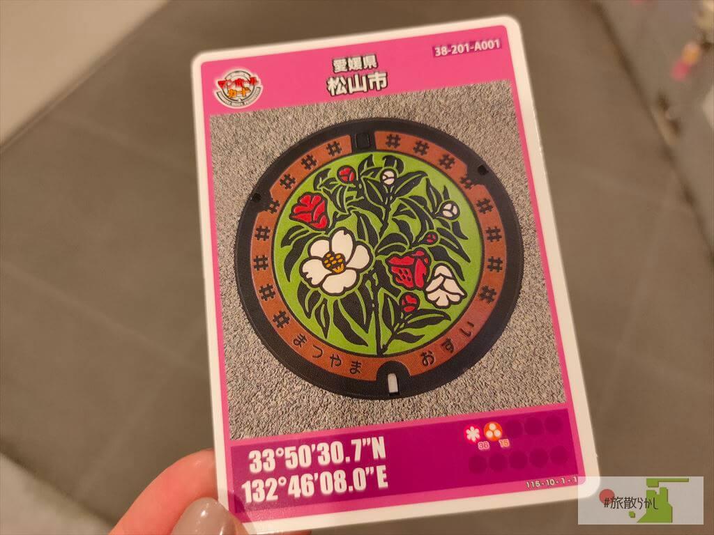 愛媛県松山市マンホールカードをもらった!ヤブツバキと伊予かすりの井桁文様デザ…