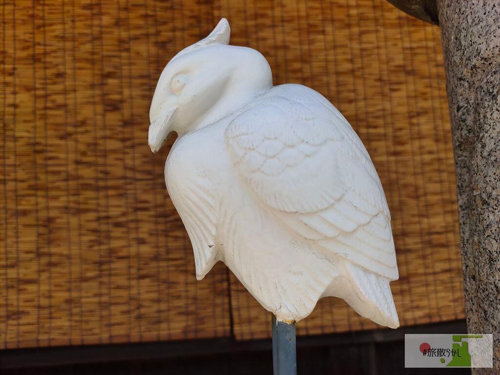 道後温泉では至る所で「白鷺」を見かけます。この辺りでは白鷺伝説といって、道後温泉は白鷺が発見したと言い伝えられています。足を怪我した白鷺が、道後温泉のお湯に足を浸して直した…と言われています。((「伝云、古此湯少し湧出して 洴澼 ( へいへき ) たり、鷺の足かたはなるが、常々来りて足を浸す、幾程となく平癒したり、故に此所を鷺谷と云」 ―『予陽郡郷俚諺集』より引用。(現代語訳:昔々のこと、足を痛めた白鷺が毎日毎日舞い下りて、岩の間から流れ出る湯に浸していた。)))