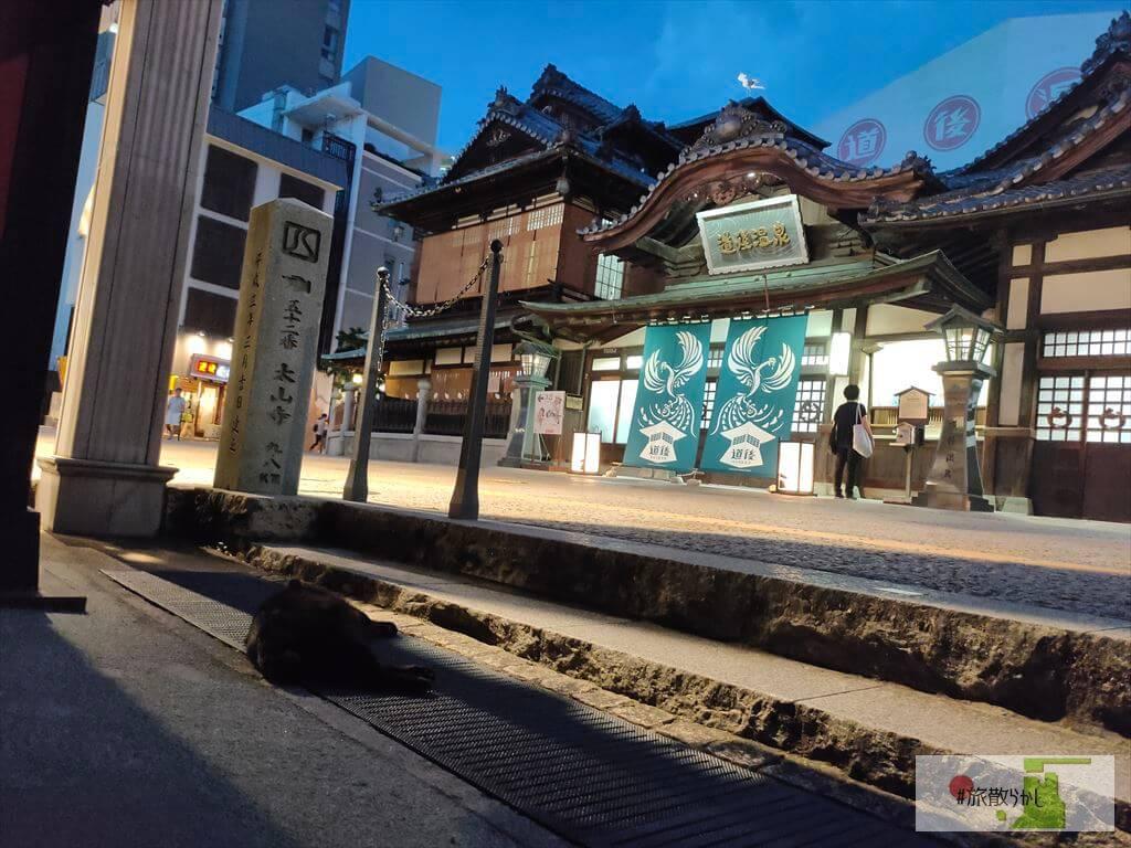 また、道後温泉本館は夜になると全体がライトアップされます。夜の散歩にうってつけ。