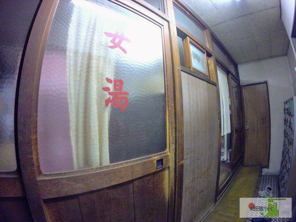 脱衣所は木でできたロッカーの造りになっており、鍵がかけられます(無料・小銭不要)。3歳くらいの子供とお母さんが仲良くお着替え中でした。番台のところが男女通り抜けできるように細い空間があって(※通常はお店の人用です)小学4年生くらいの男の子が全裸でこっちに一瞬来ては戻りを2回リピートしたりしていて何だかなと思ったり(笑)あれは…お年頃のやつだな(小声)
