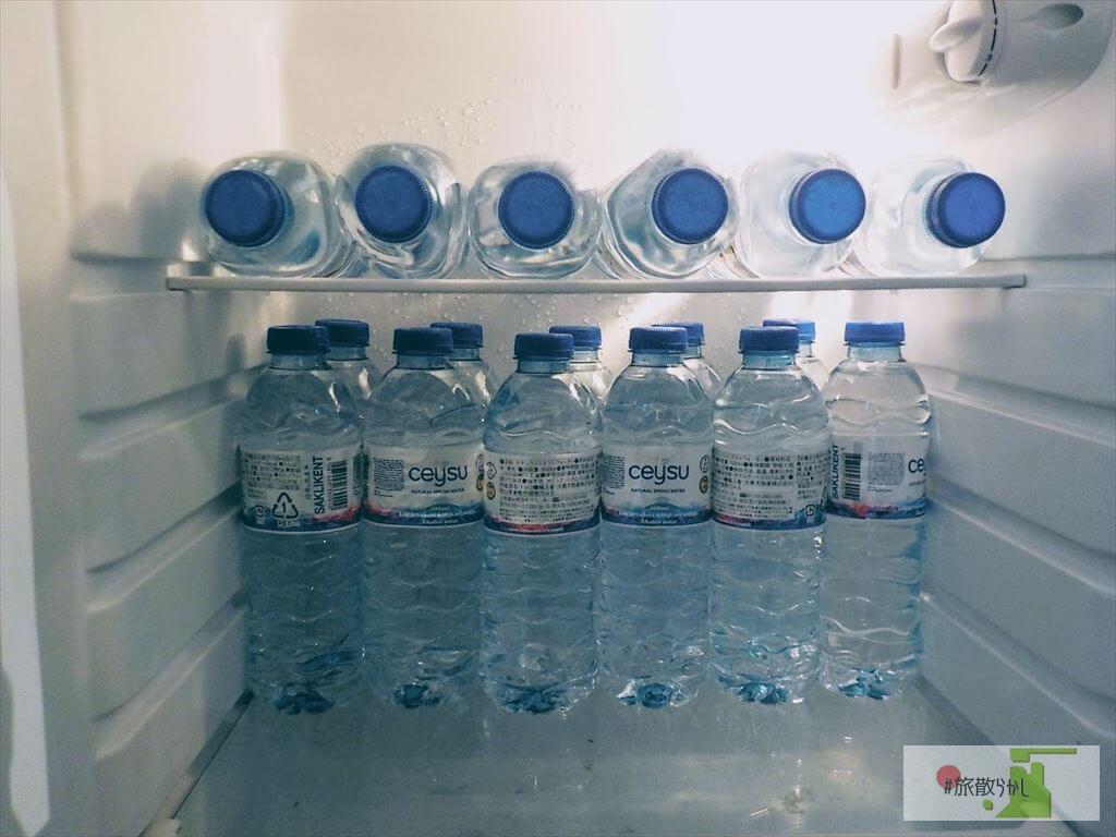 - (左)冷蔵庫にはびっしりとお水がつまっていた。自由に飲んで良い。