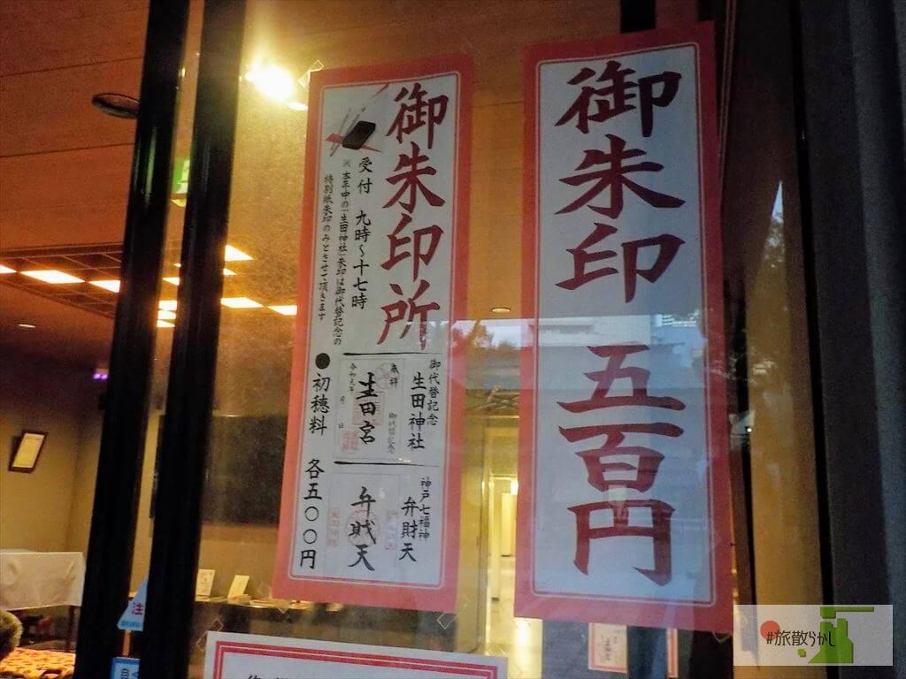 - 御朱印代は500円。生田神社と弁財天の2種類。