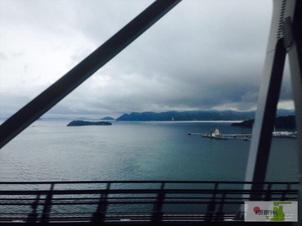 - 快速マリンライナーで瀬戸大橋を横断中の写真。