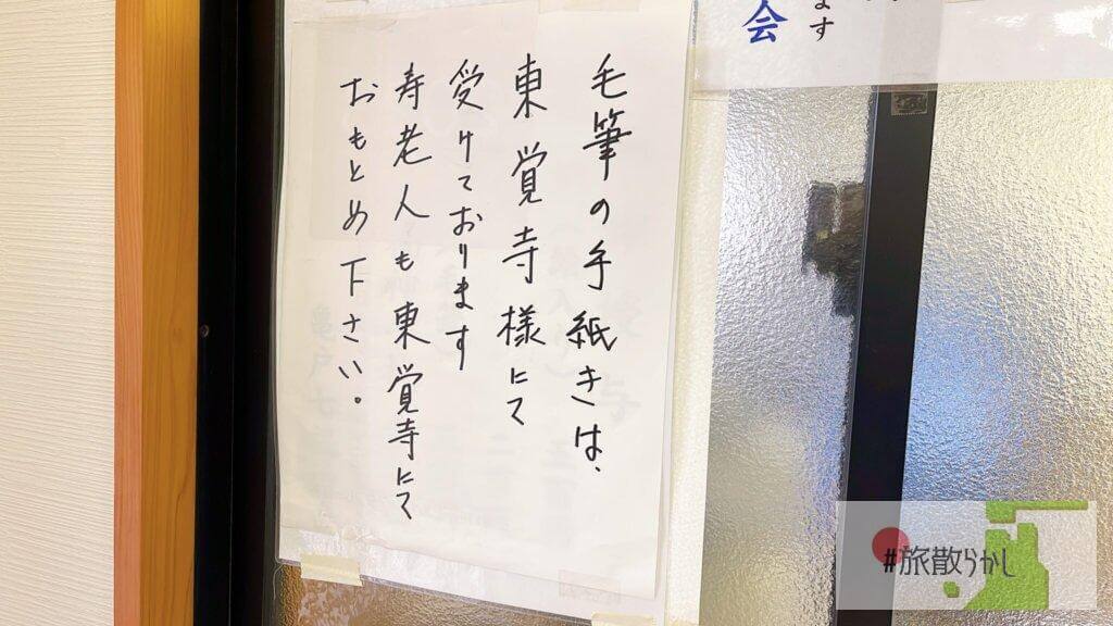 色紙に毛筆で書いていただくのを希望される方は、1つ前の常光寺の分も合わせて東覚寺でお願いしましょう。
