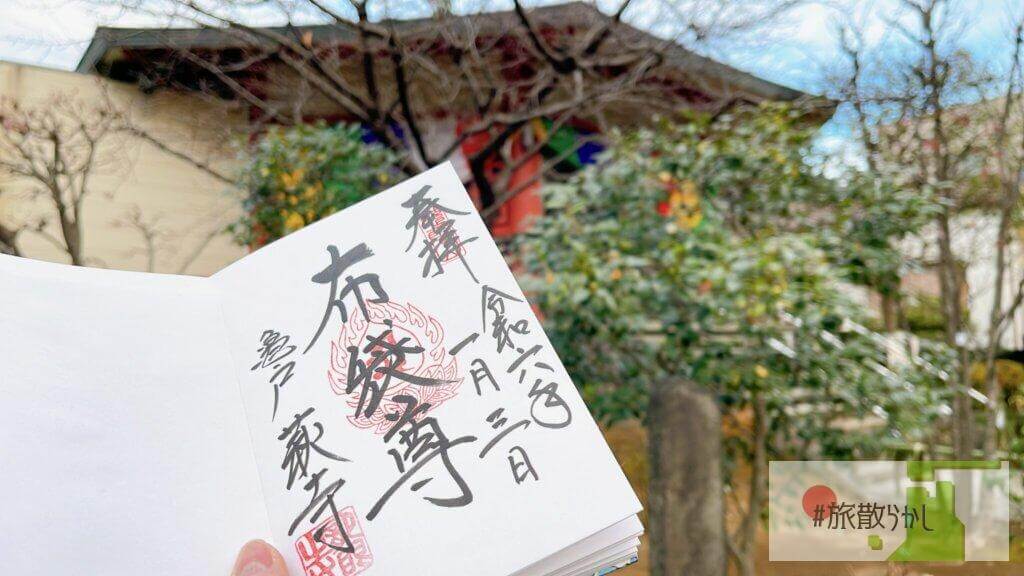 色紙にスタンプをいただく場合は、常光寺で押していただけます。ただし、色紙に毛筆で書いてもらいたい場合は、次の東覚寺で一緒にお願いしてください。