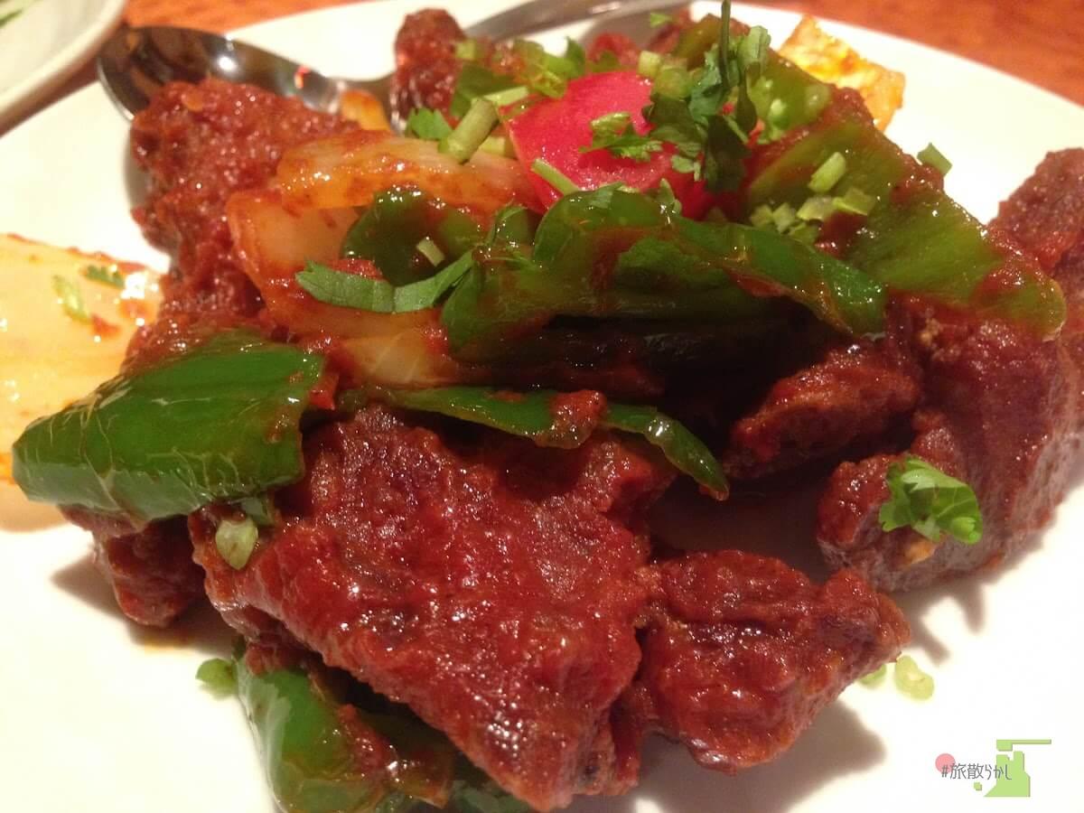 ネパールで代表的な野菜といえば、ほうれん草。豆腐パルンゴは、ハーブの香りが香るやさしい味の料理。ほうれん草のグリーンが濃いので外観に一瞬たじろぎますが、穏やかな味わいでとても美味しかったです。