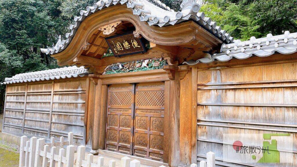彫刻が美しい唐門はかつて後楽園への正式な入口だった