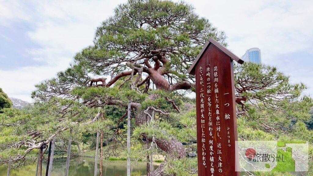 大泉水のほとりにある「一つ松」は、大津の「唐崎の一つ松」を見立てて植えられたものだといわれています。光圀はこちらの松をとても大切にしていたそうです。