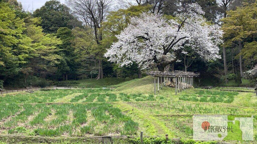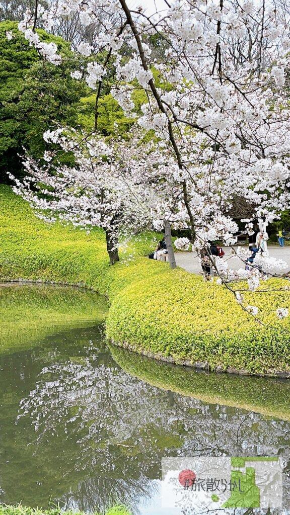小石川後楽園では3月下旬~4月中旬頃まで桜が楽しめます。2023年4月5日現在、庭園内のヤマザクラとソメイヨシノが満開でした。枝垂桜の見頃はそれよりも早く、3月中旬~下旬だったので既に散っていました。