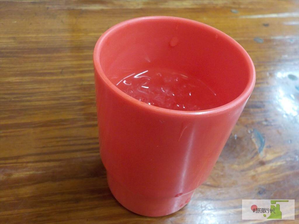 - 水がうがいするコップみたいなのに入っている。