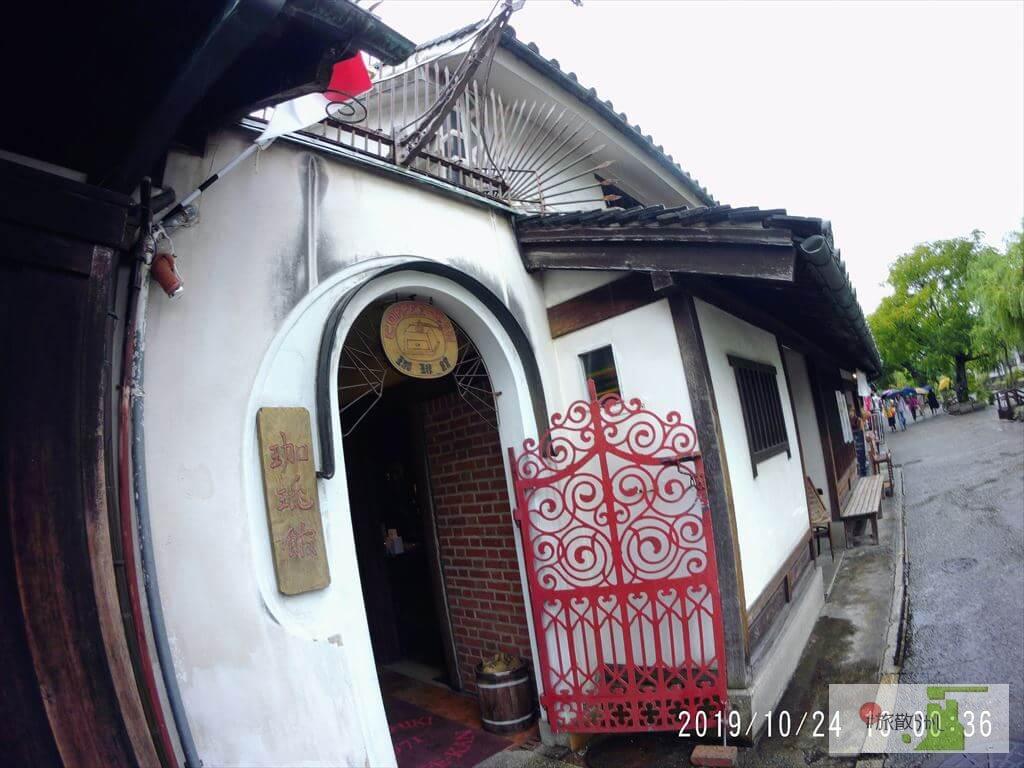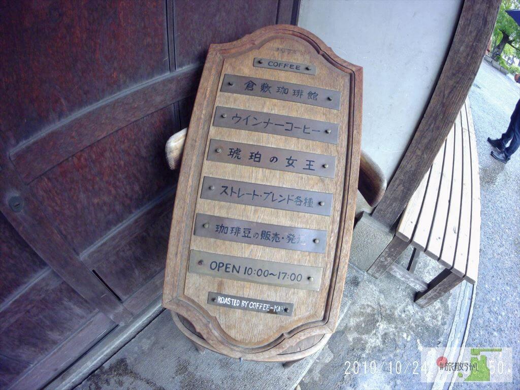 倉敷を散歩、美観地区とだけあって町並みは綺麗に整えられています。ただ、曇天だったのが残念。雨も降っているしどこかで休憩&作戦会議を…と思いふらついていると、珈琲館と書かれた赤い門がオープン。ちょうど開店時間だったようです。そのまま入店。