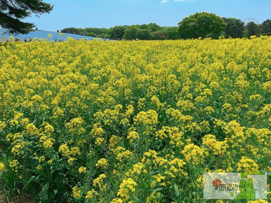 ネモフィラ以外にも、ひたち海浜公園では季節折々のお花を楽しめます。ネモフィラと同時期に咲いていた菜の花も大変美しいです。