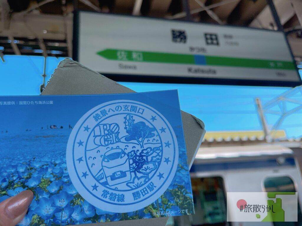 勝田駅の駅スタンプには、特急列車とネモフィラがデザインされていました。素敵なスタンプなので、こちらも記念に押して帰りましょう。