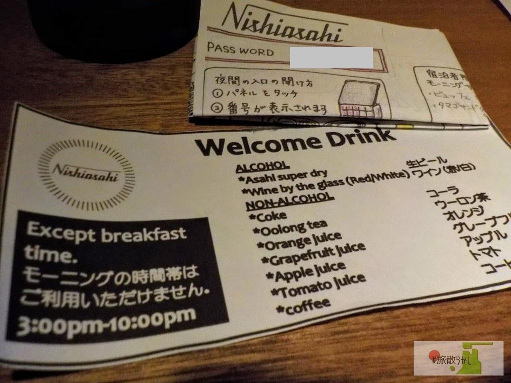 「西アサヒ」ゲストハウス宿泊者のウェルカムドリンク