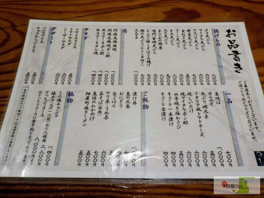メニューはこのように、徳島の名産を意識したラインナップ。網羅している印象を受けたので、多くの観光客にとって満足できる品ぞろえかと。