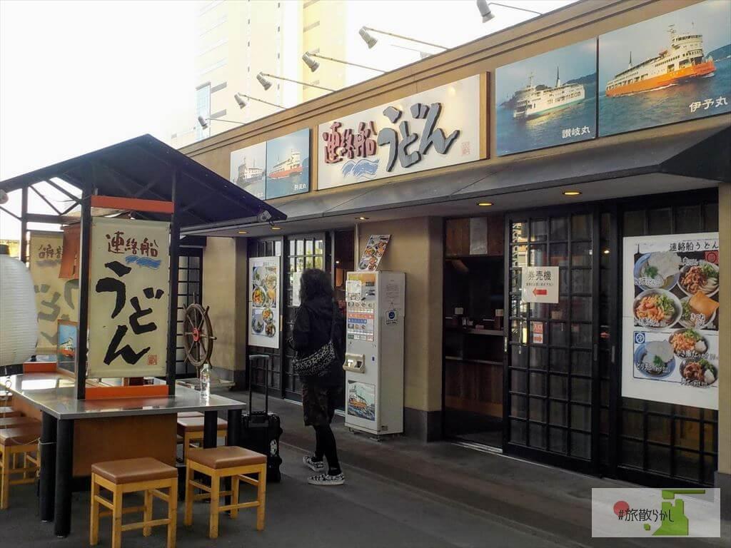 連絡船うどんは改札内外いずれからも入れます。かつてここで、宇高連絡船の利用者が海を見ながらうどんをすすっていたんだなと思いを馳せつつ食べる1杯。