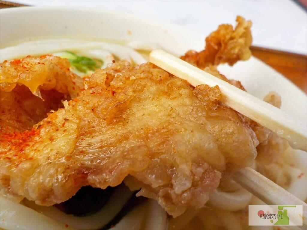 - とり天うどんを注文。愛想の良いお姐さま店員さんが対応してくれた。