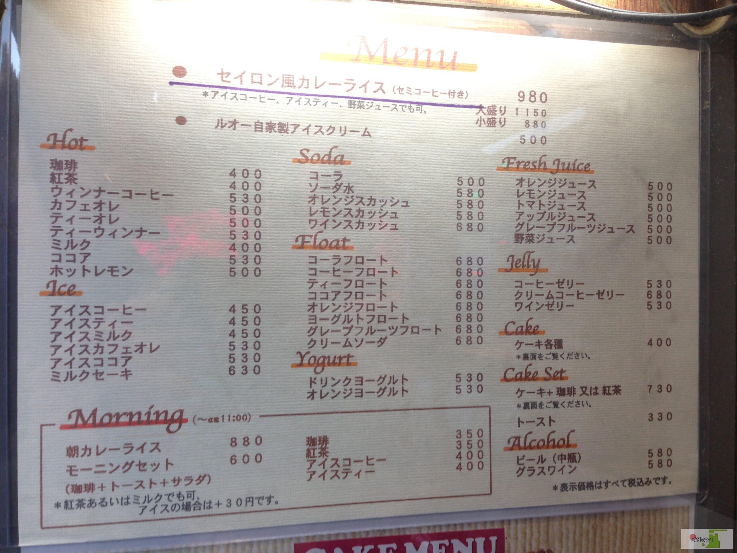本郷の通りに面してお店を構える「喫茶ルオー」。お店の外にメニューが貼ってあるので、安心して入店できます。喫茶店には珍しく、団体で来るお客さんも多いです。昔話に花が咲いているおじいさまおばあさま方に遭遇することが多々あり、ああやって年を取ったら幸せになれるんだろうかとかなんとか考えたりします。余談でした。