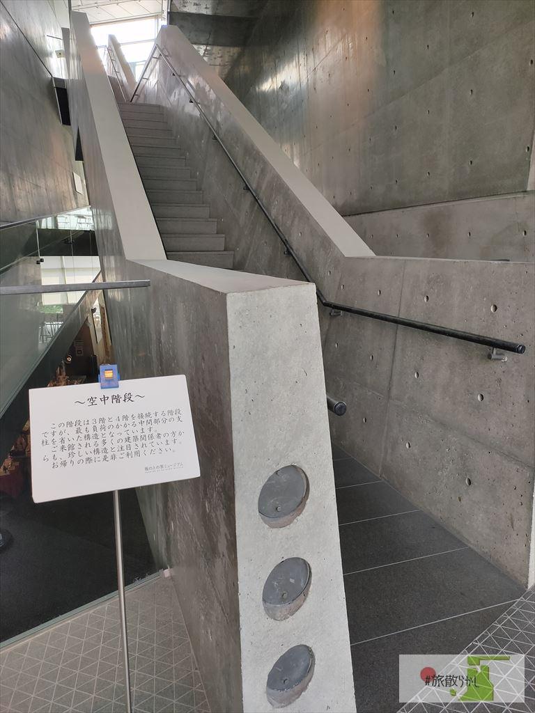 博物館内は、建物の構造を活かした形の見学ルートになっています。この点もたのしみポイント。中央を渡すように設置されている階段もぜひ登ってみてください。