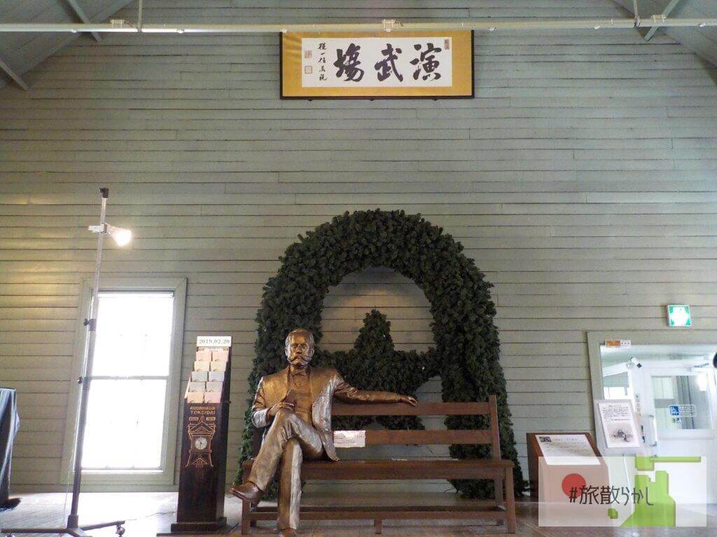 講堂の正面頭上には、札幌農学校の演舞場であったことを示す「演舞場」の文字が掲げられています。