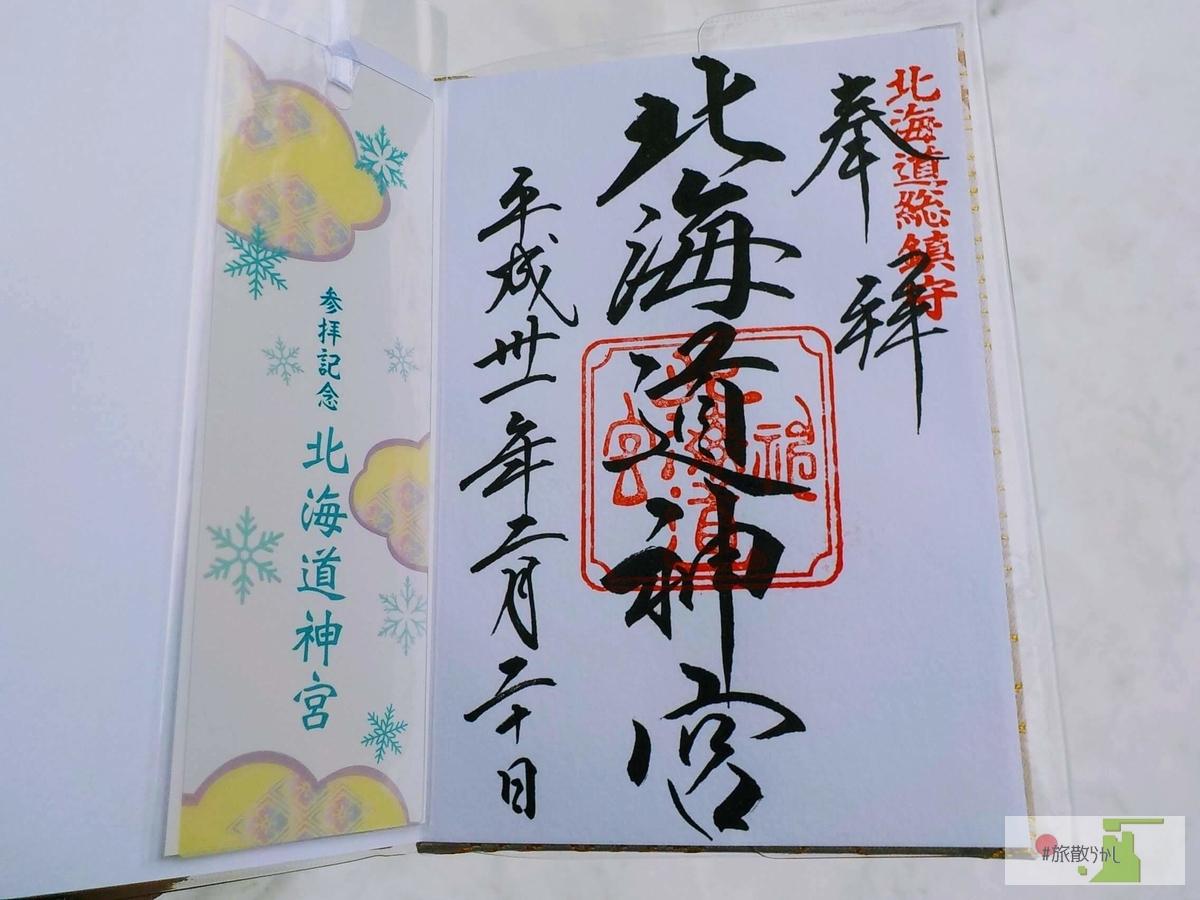(左)御朱印は「北海道神宮」「開拓神社」の2種類ある。栞付き。/北海道神宮/6:00~17:00/拝観無料/東西線「円山公園駅」徒歩20分弱/駐車場有(240台)。(右)北海道神宮の参道。