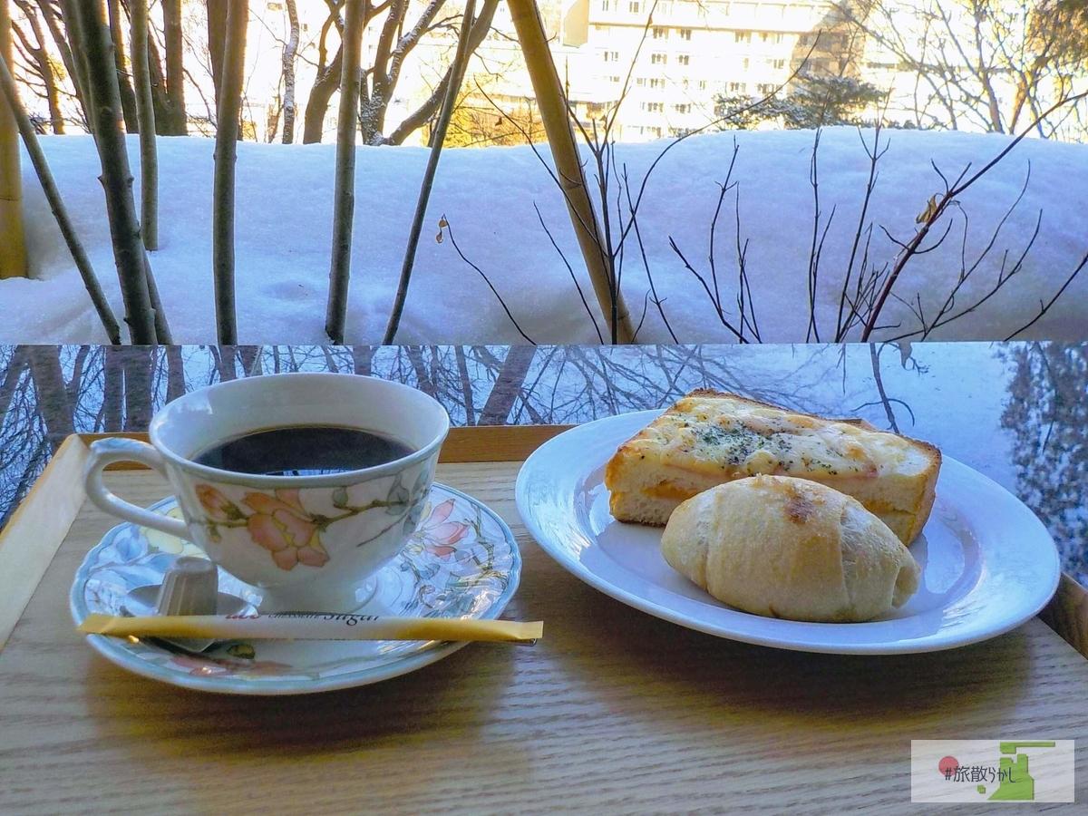 前日早めに就寝したため、朝早く出発した。8時頃に定山渓に到着し、向かったのは「万世閣ホテルミリオーネ」。ホテルの1階にはカフェがあり、宿泊客でなくても利用できる。テラス席で足湯をしつつ、温かい珈琲とパンを頂くことができる。本を持ってきたので、しばらく読書をしながらゆっくりした時間を過ごす。今日はだらけるだけの何もしない1日にするのだ。