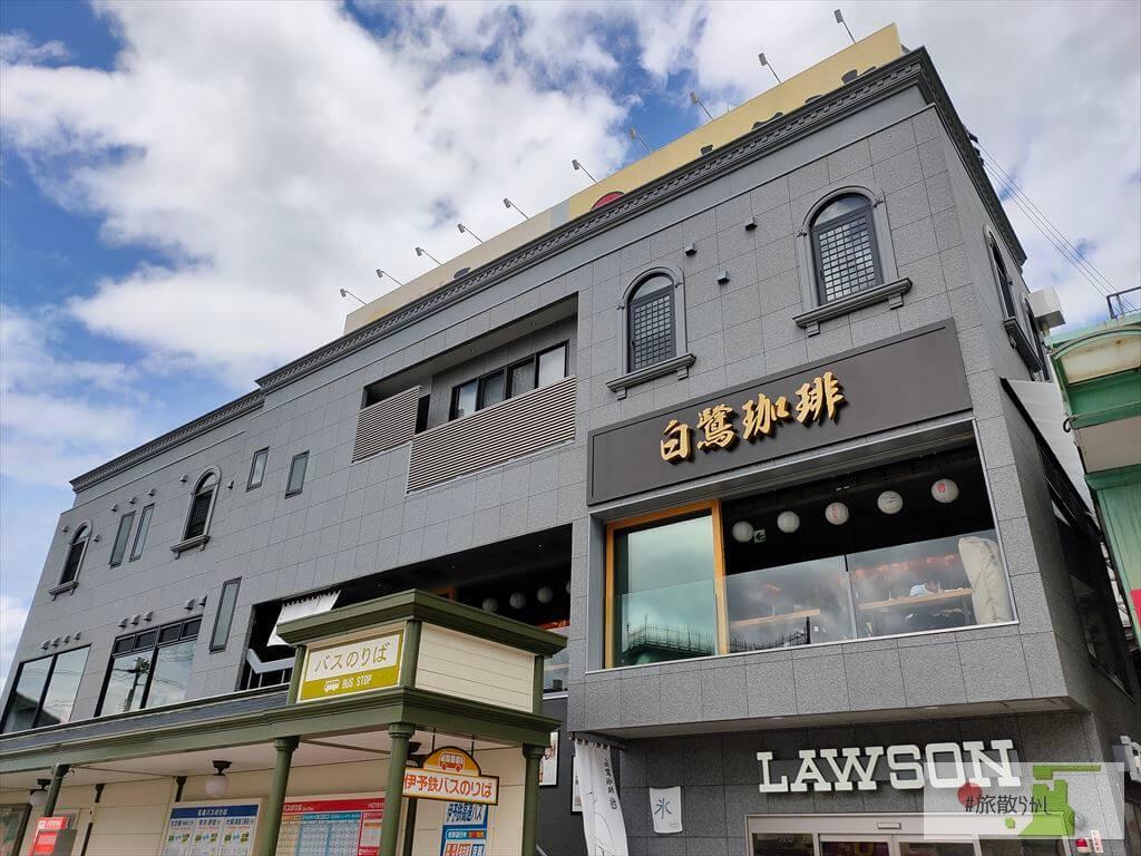 - 白鷺珈琲外観。道後温泉駅目の前。