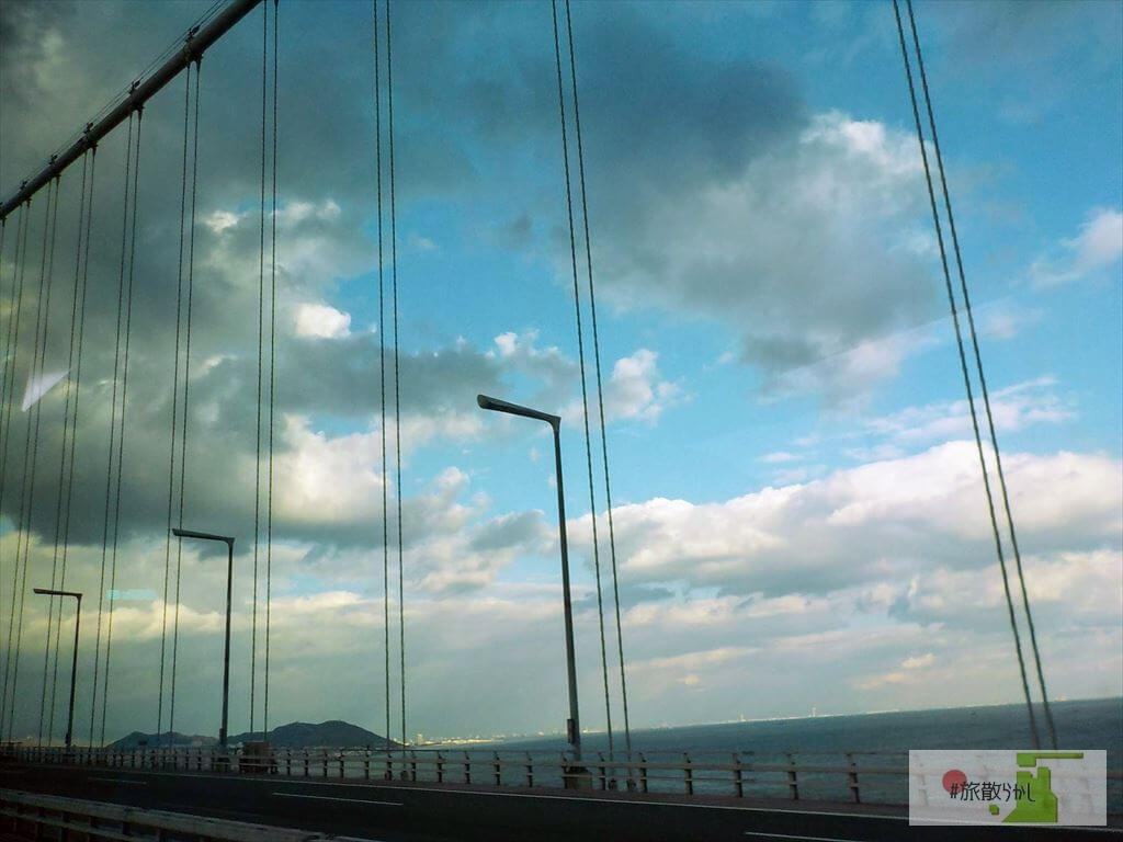 バスの座席は、広いタイプ!深夜バスもこれだったら良かったのにとか思いつつ、ゆったり乗車。乗車時間はたしか2時間ちょっと、本州から明石大橋を渡って、淡路島を通過し、四国に入るので景色がとても良い。