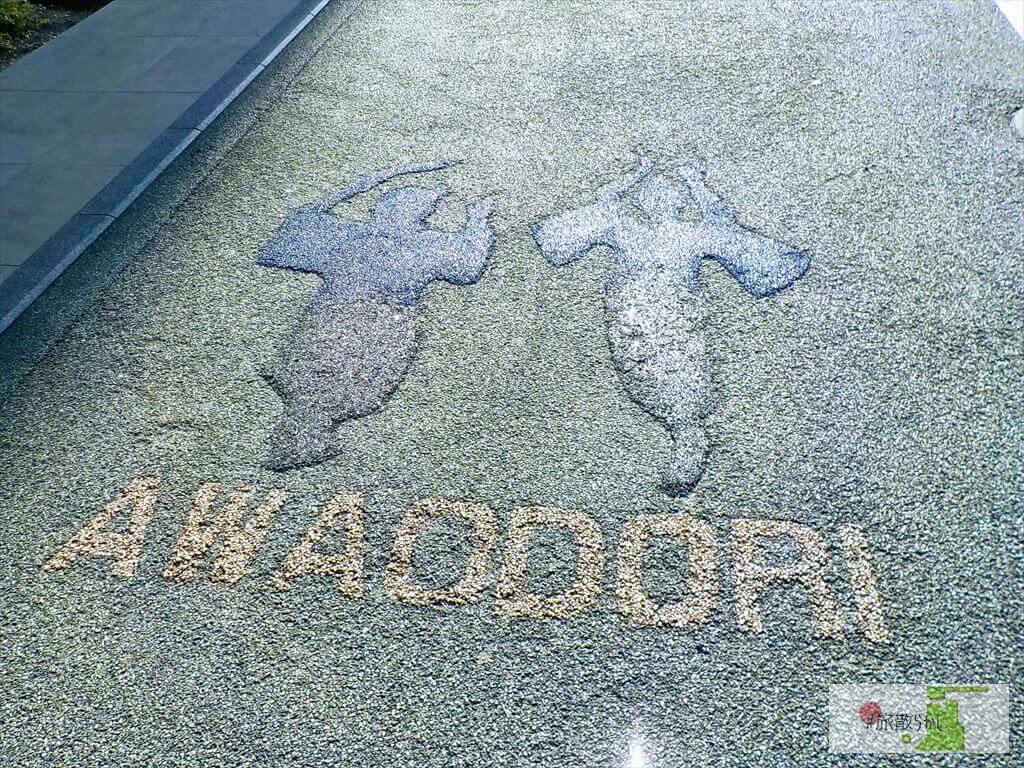 - (左)駅前の歩道。ここまで阿波踊り一色になっているとは恐るべし。