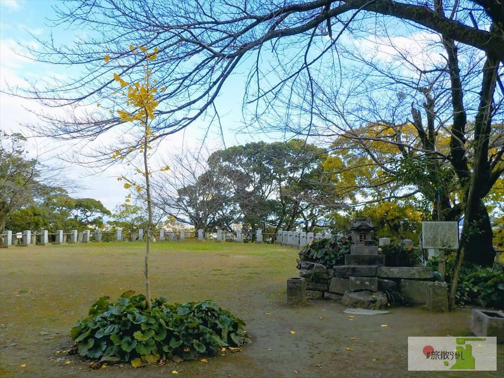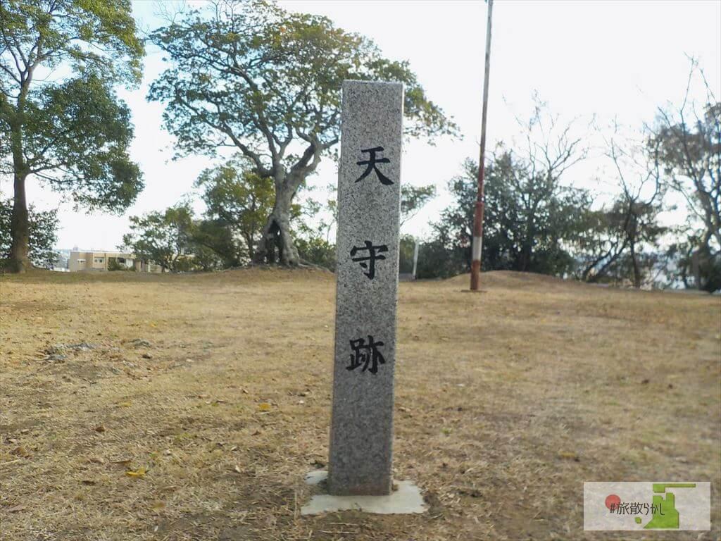 - 本丸跡にて。天気が良く風が気持ちよかった。何もないのが少し物悲しさを醸す。