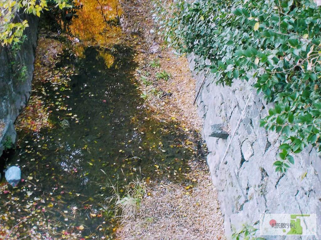 - (右)枯池と自然石で造られた橋。