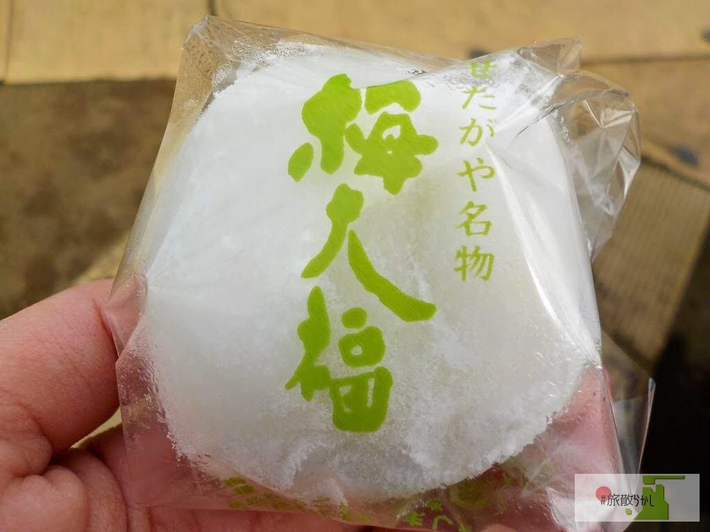 せたがや梅まつりの期間中に出ている売店では、梅を使ったお菓子やお土産の販売がある。一番人気は、甘露煮の梅が丸ごと1個入った梅大福(160円)。他にも、梅ようかんや梅ジャム等々、梅好きには気になる商品が並ぶ。土日祝中心に、甘酒やフランクフルトといった軽食販売もあるので、午前中から観梅し、梅を見ながらここで軽食を取っても良さそうだ。