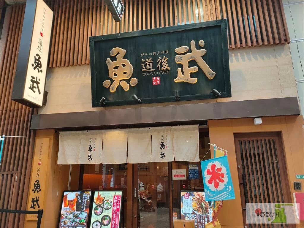 「道後 魚武」は道後温泉本館近くにある飲食店です。ランチ・ディナーいずれも営業していて、愛媛の郷土料理の品ぞろえが豊富。だいたいのものは魚武に来れば、食べられます。
