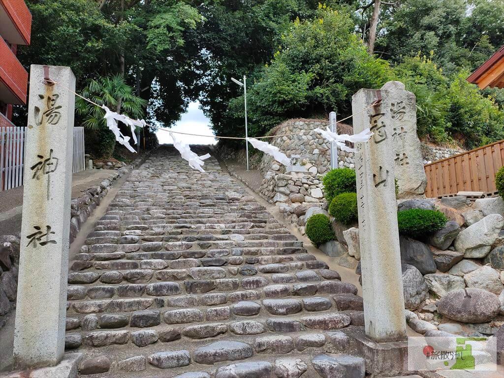 道後温泉の守り神「湯神社」は、道後温泉本館直ぐ近くの高台の上にあります。徒歩で簡単に歩いて行けるので、散歩がてら向かってみました。